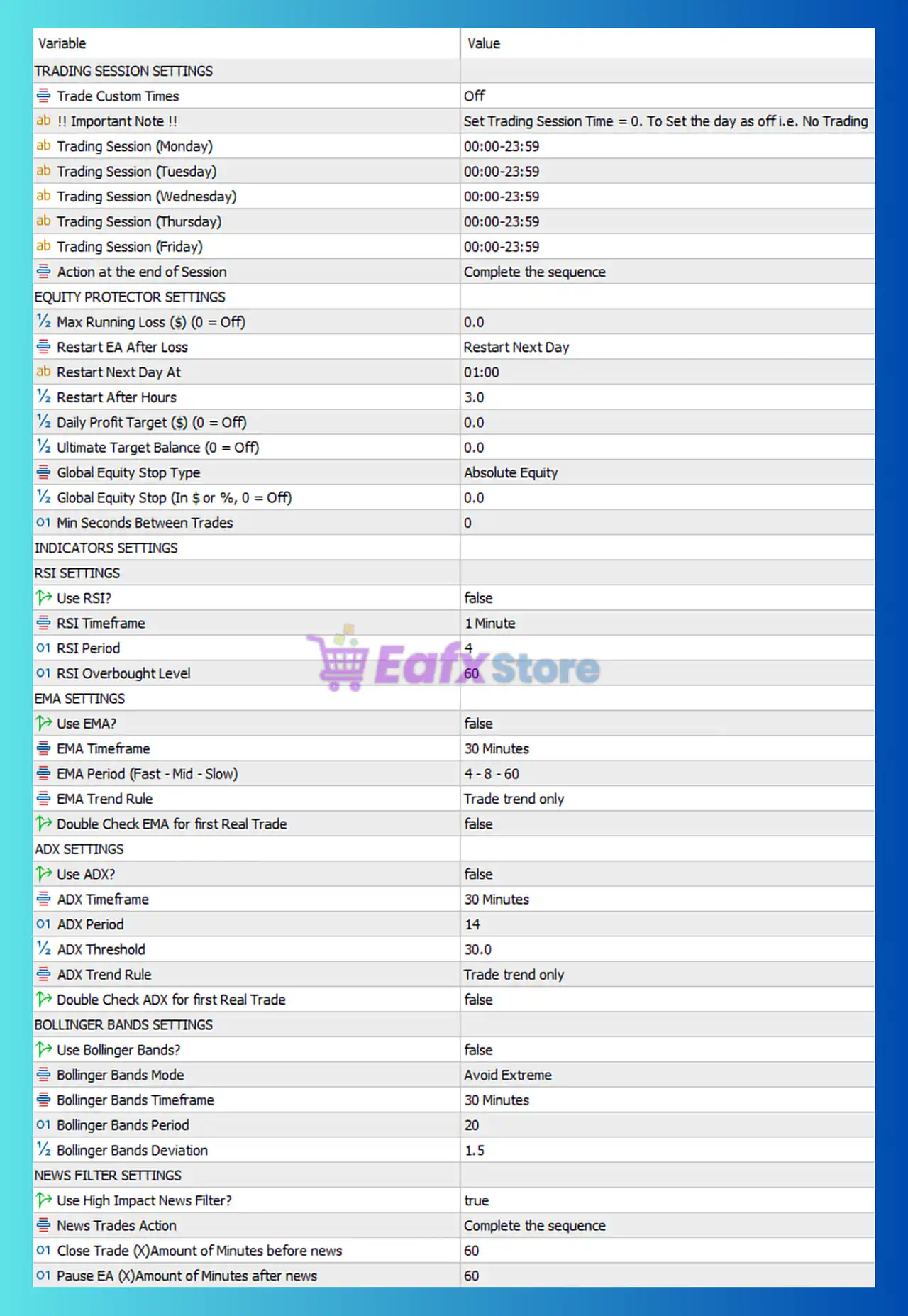 📌📌📌 Buy this unlimited Archangel X MT5 product here 📌📌📌 🔹 GENERAL TRADE SETTINGS Parameter Value Meaning & Trading Impact Allow New Sequence true Enables the EA to start a new trading cycle after the previous one completes, allowing continuous operation Strategy Description — Optional comment field to describe the trading logic used Trade Comment — Custom label shown […]