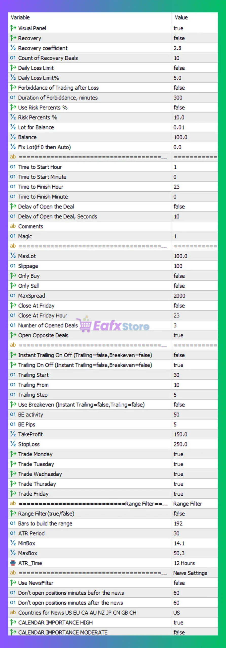 - Forbiddance of Trading after Loss: false