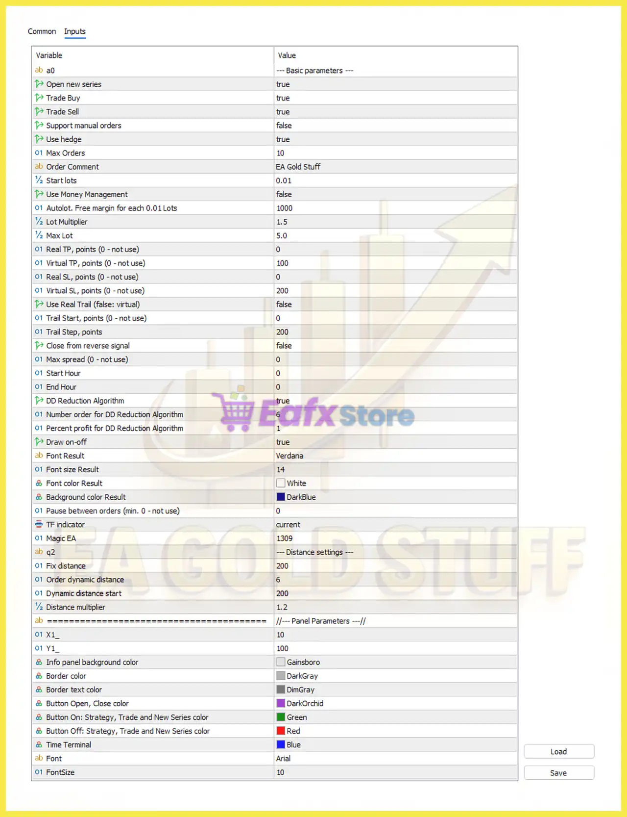 ✅ These settings make EA Gold Stuff MT5 suitable for fully automated gold trading with dynamic hedging and moderate risk control, ideal for intraday and swing strategies.