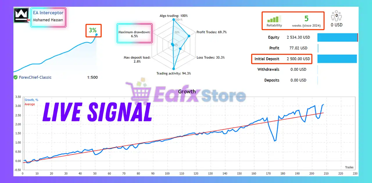 EA Interceptor MT4 is a low-lot, high-frequency scalping Expert Advisorย (EA) designed to capture small, consistent profits while avoiding high-impact news volatility. With hidden take profit, predefined lot sequences, and a robust news filter, it is suitable for experienced traders using low-spread brokers and accounts that prioritize execution quality. However, to enhance safety, traders are advised to manually configure account-level drawdown limits when deploying this EA on live accounts.