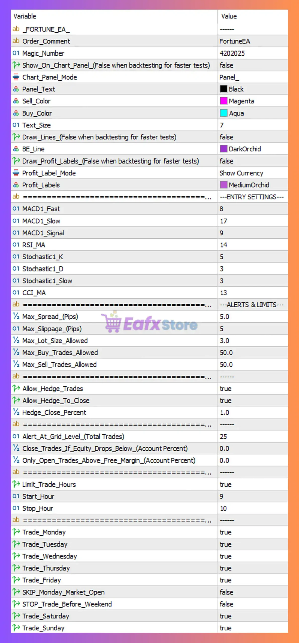 The Fortune EA MT5 is an advanced automated trading system that leverages a Dynamic Grid Strategy combined with technical oscillators. Below is a detailed breakdown of its configuration to help traders balance profitability and risk.