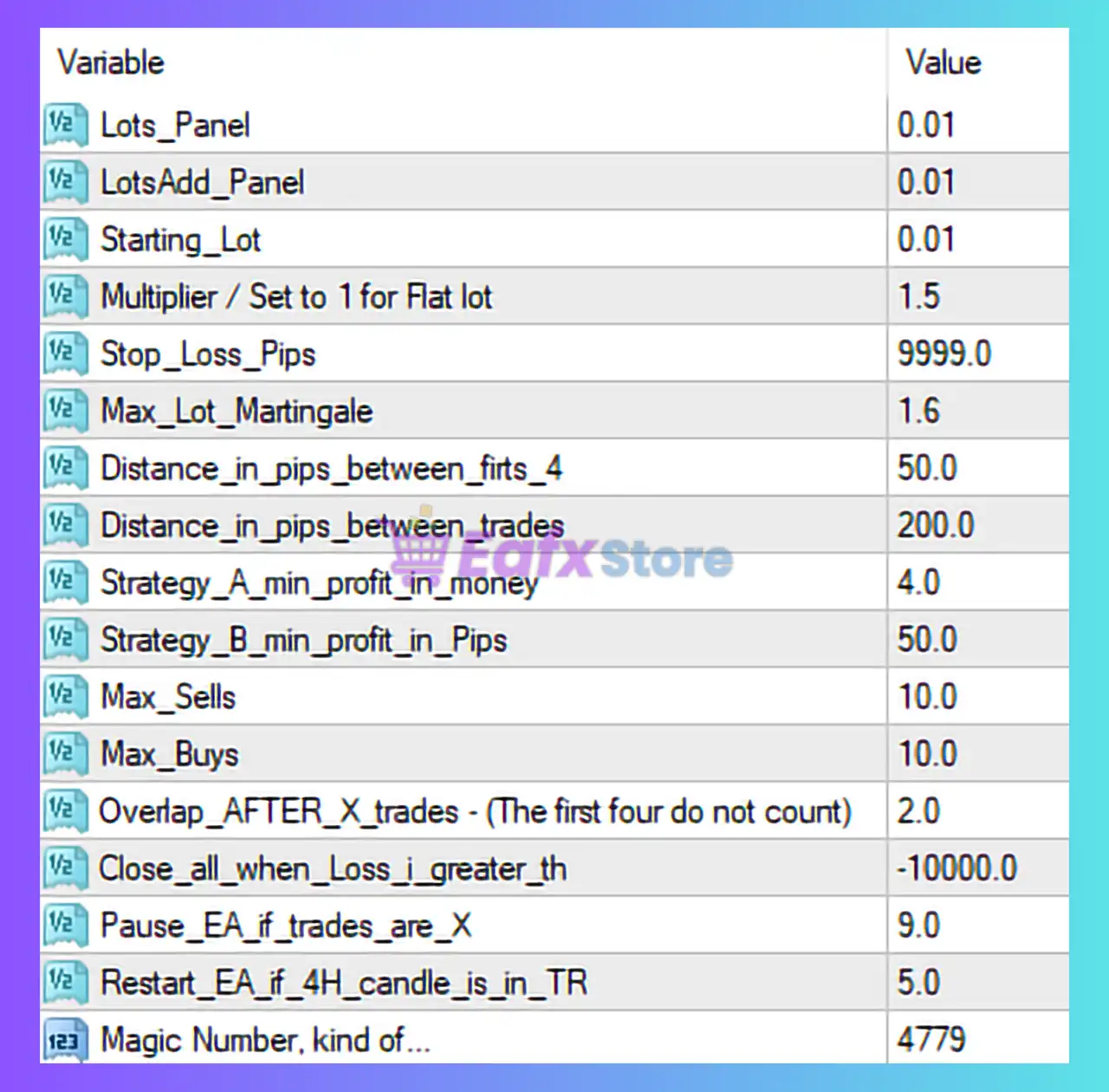 This review provides an in-depth analysis of the Gold Stallion EA for MT4, a trading robot designed mainly for Gold (XAUUSD) using a grid + martingale recovery logic combined with profit basket management. The parameters shown in the image indicate a setup focused on controlled trade frequency with aggressive recovery potential.