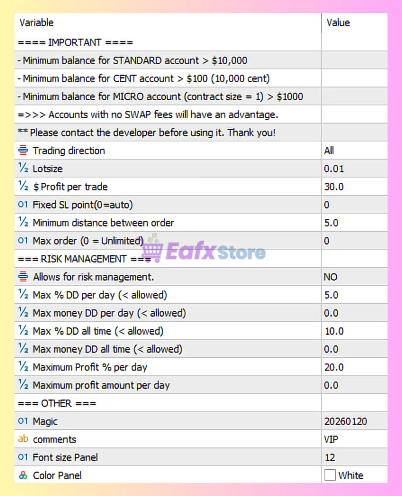➡️ Risk Profile: Gold VIP EA emphasizes percentage-based protection, which scales naturally with account size.