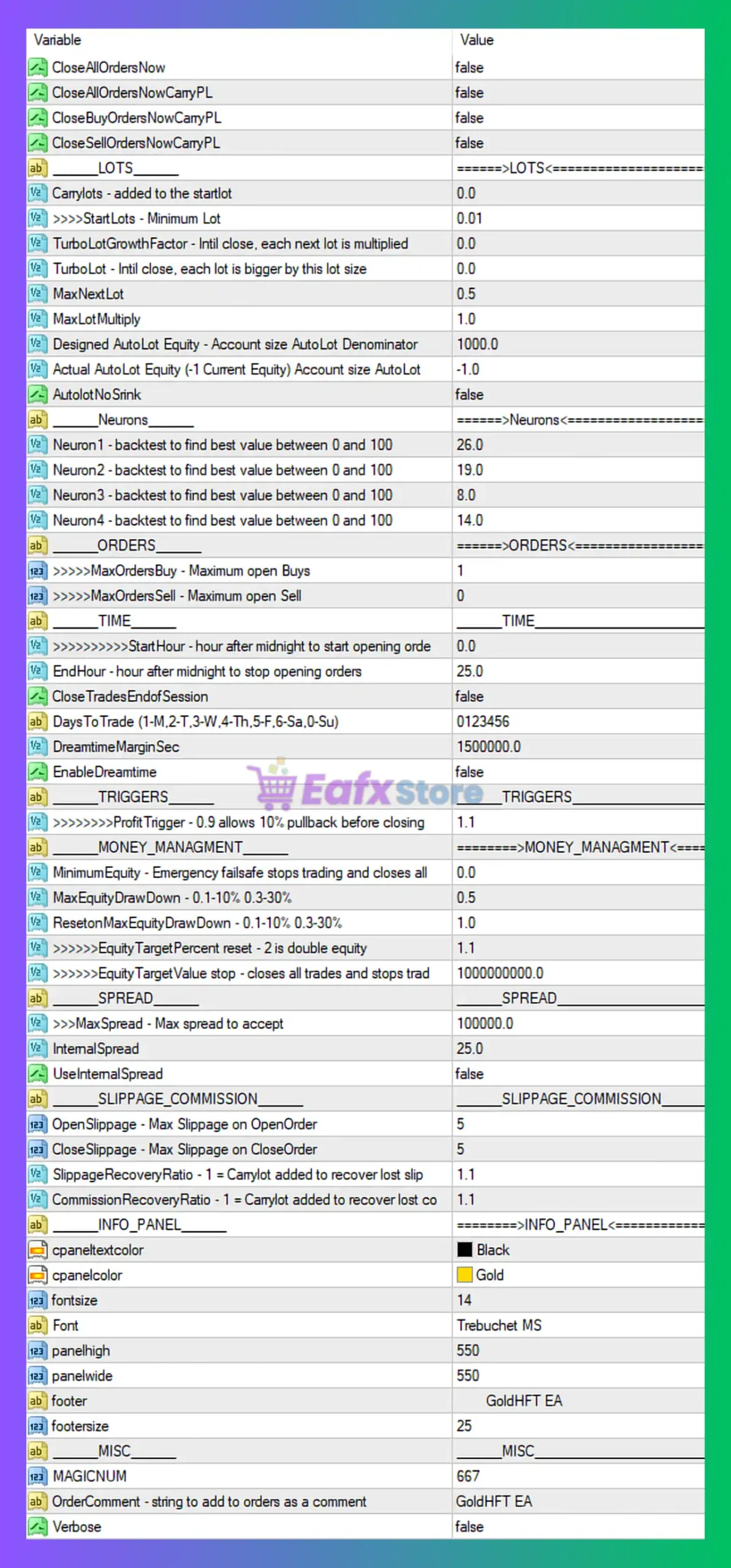 - Order Comment: GoldHFT EA