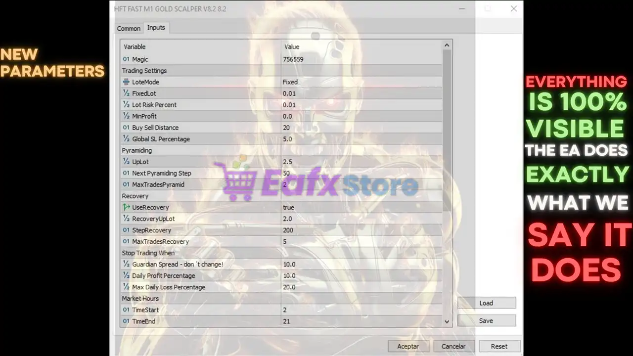 The HFT Fast M1 Gold Scalper EA provides traders with full transparency and a wide range of customizable parameters to balance profitability and safety.