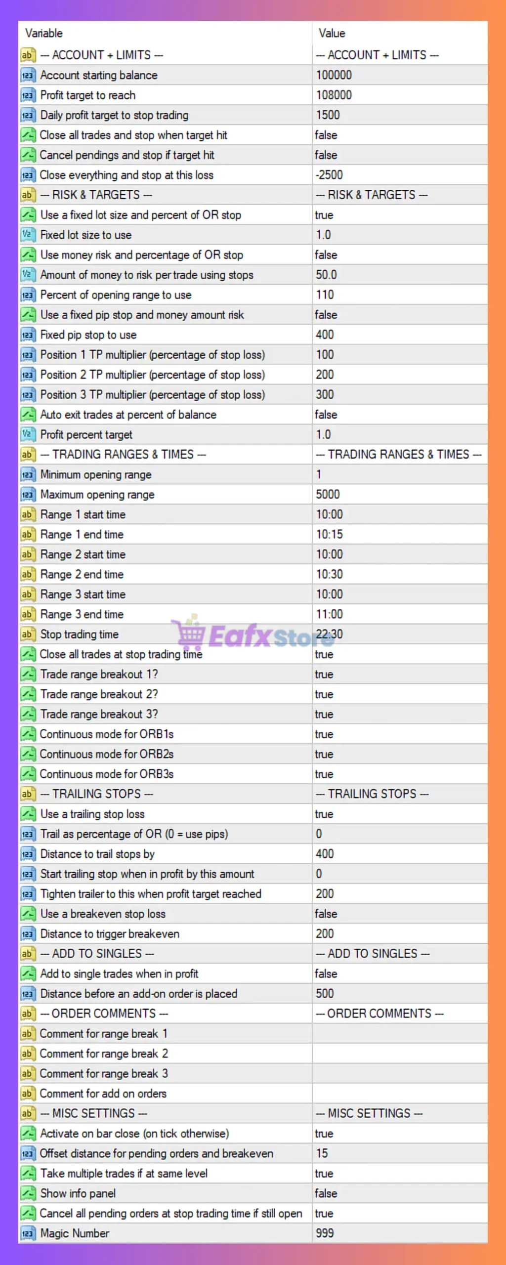 This Opening Range Breakout EA configuration represents a well-structured, disciplined breakout trading system designed for high-volatility instruments and intraday momentum strategies.