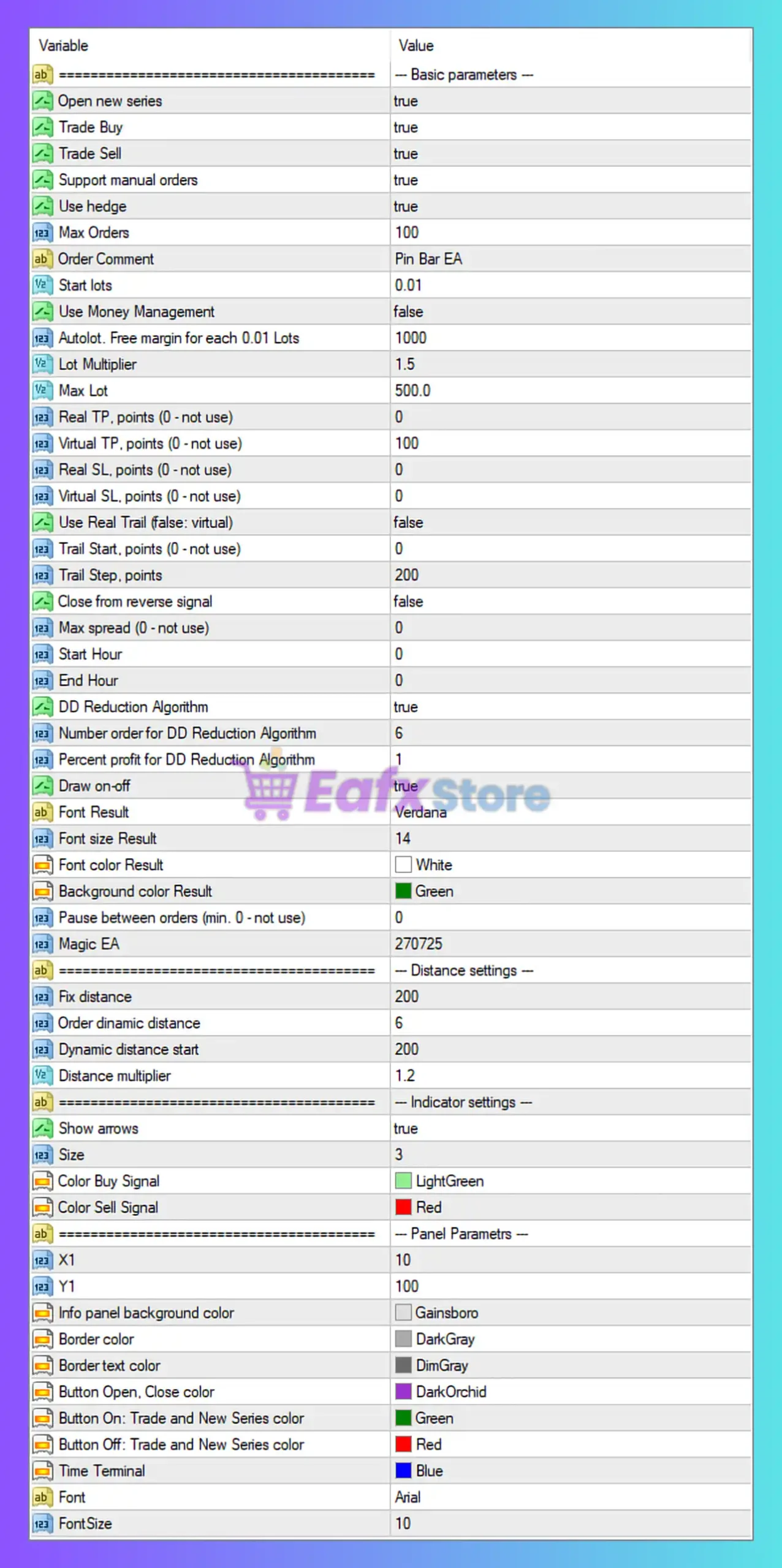 Based on the configuration shown, Pin Bar EA MT4 is clearly designed as:
