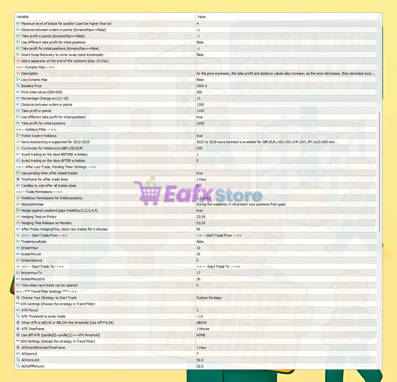 - Forbid Trading on Holidays: Automatically disables trading during low-liquidity periods.