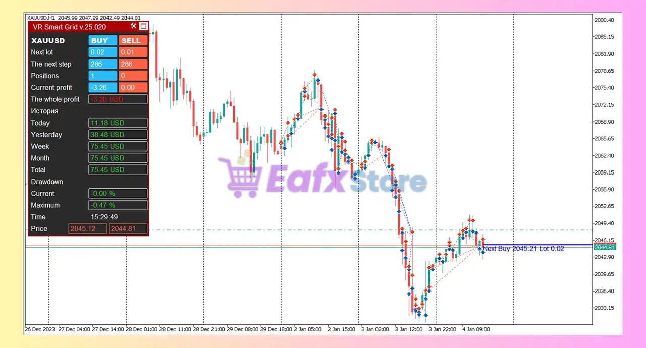 The VR Smart Grid EA for MetaTrader 4 (MT4) is a highly versatile automated trading tool that distinguishes itself from standard grid bots through its Smart Averaging and Dynamic Trailing algorithms. Rather than just placing orders at fixed distances, this EA treats the grid as a fluid system that can partially close, hedge, and adapt to the current trend direction.