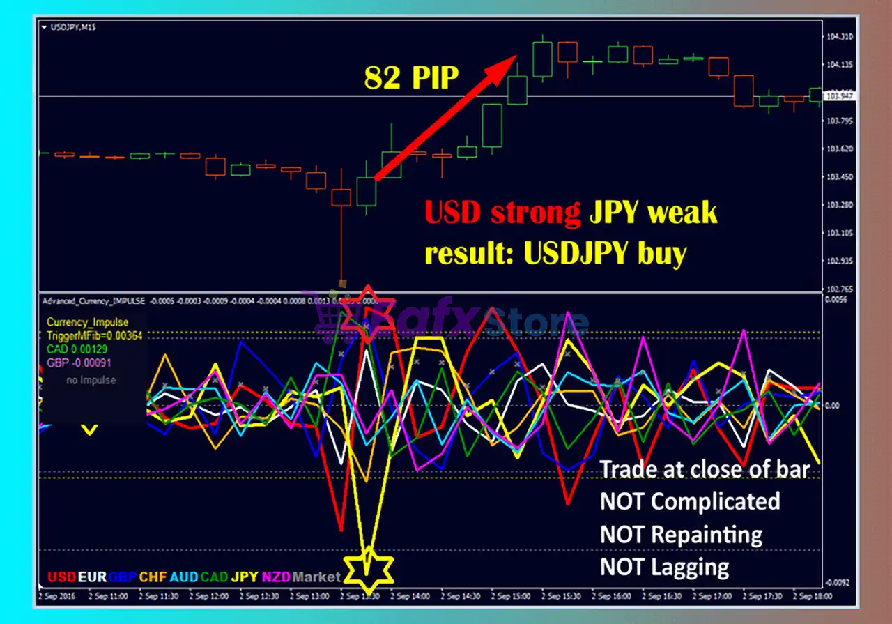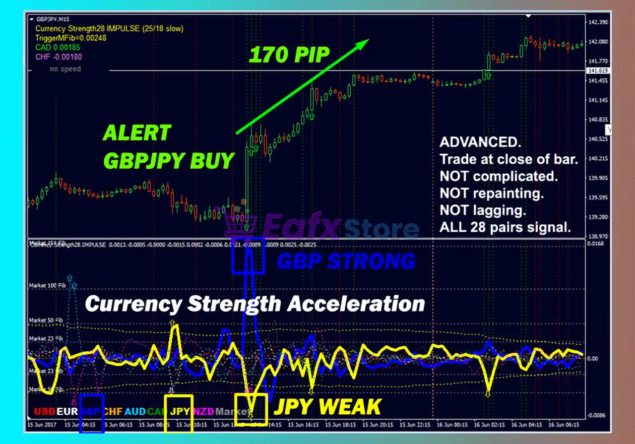 The Advanced Currency IMPULSE with ALERT indicator goes beyond basic price changes. It uses a proprietary algorithm to measure the rate of acceleration of individual currencies. By identifying when one currency speeds up while another slows down, it pinpoints the exact moment a trend is "initialized," allowing you to enter trades before the move becomes obvious to the rest of the market.