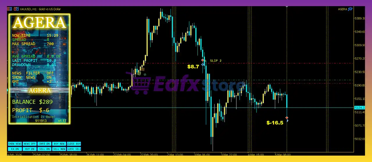 In short, Agera EA stands out as a professional breakout trading robot optimized for gold markets on MetaTrader 5. Its advanced volatility filters, dual profit targets, and adaptive broker execution logic help maintain precise and controlled trade management. Designed to capture strong price movements on XAUUSD, this EA provides a disciplined automated trading framework for traders seeking consistent performance.