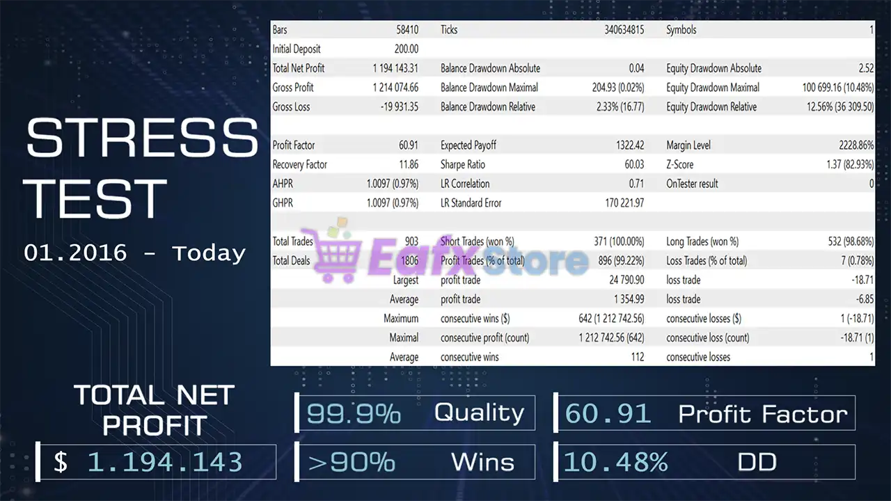 The You Golden Joker EA backtest trading results achieved impressive profit performance for 9 years on the XAUUSD (Gold) pair. The advisor showed the ability to maintain safe stars on the 60-minute chart.