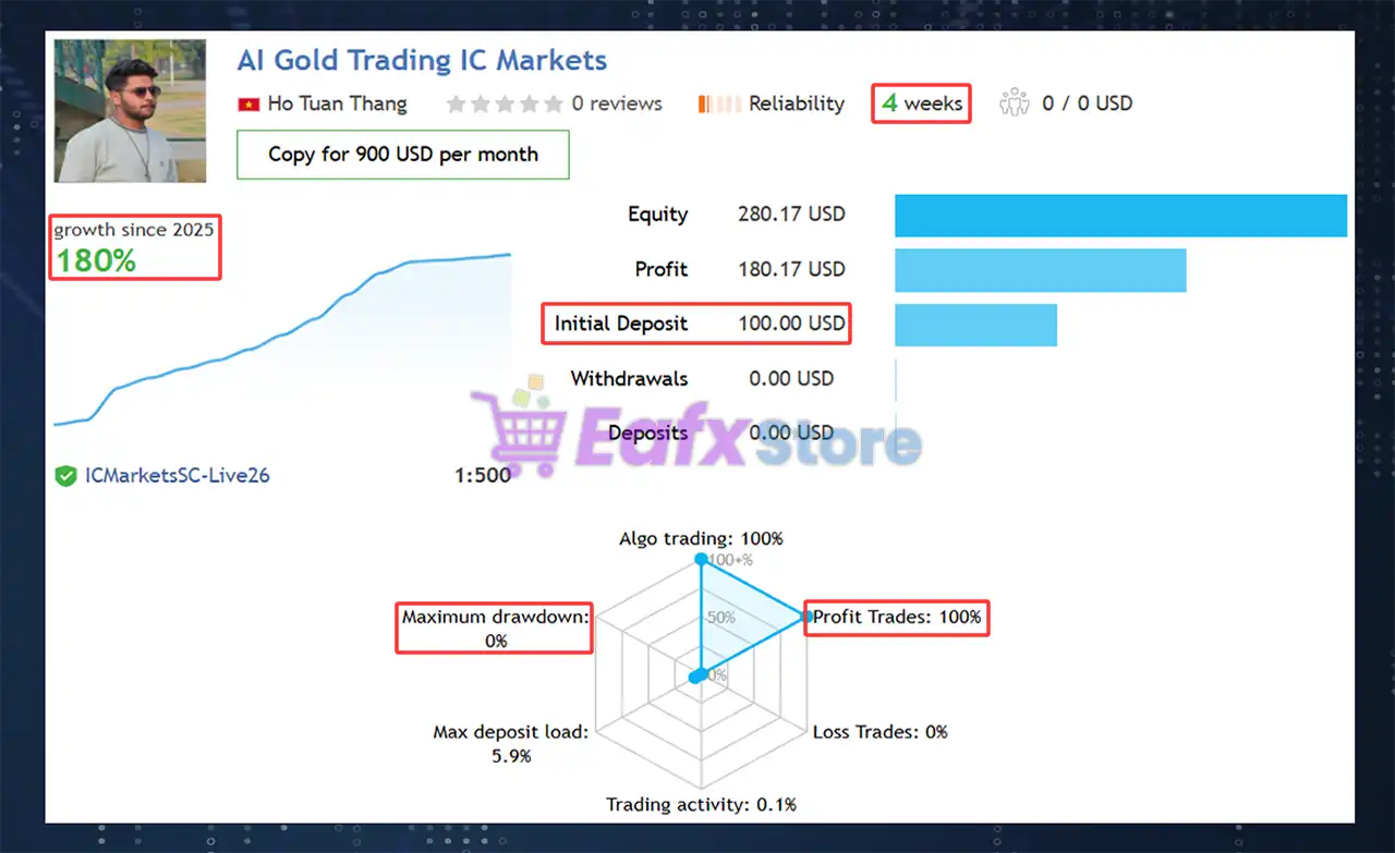 🧩 The AI Gold Trading MT5 achieved impressive profit performance when trading with GOLD pair. Trading results on real account for 4 consecutive weeks of trading: