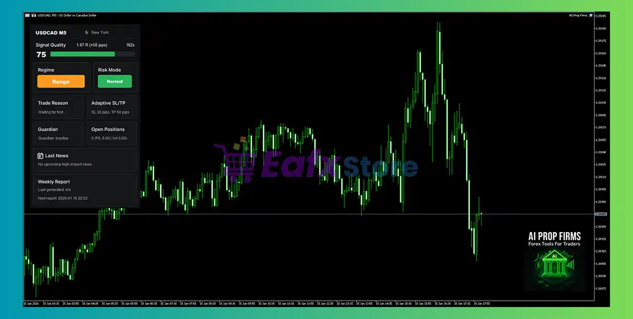 The AI Prop Firms MT4 uses a "Market Regime Recognition" strategy. Powered by AI, it identifies whether the market is trending or ranging on the M5 timeframe and only executes trades when technical confirmations (volatility and momentum) are perfectly aligned.
