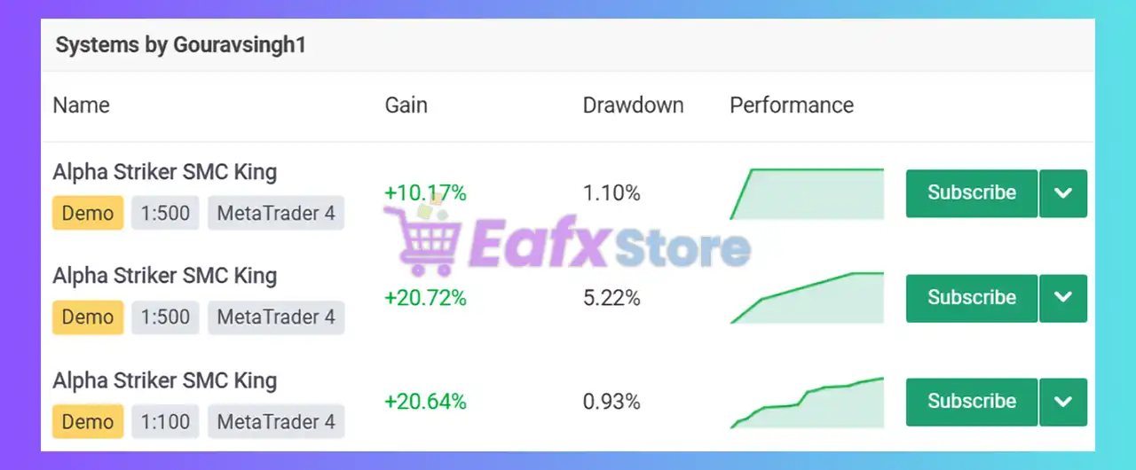 ❓ What kind of profits can I expect from Alpha Striker SMC King EA?