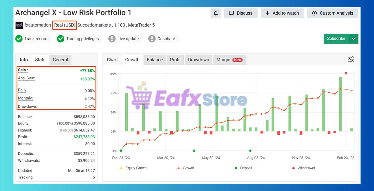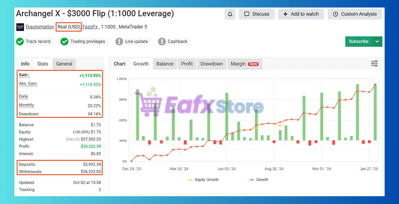 ❓ What are the verified Myfxbook results for Archangel X MT5?