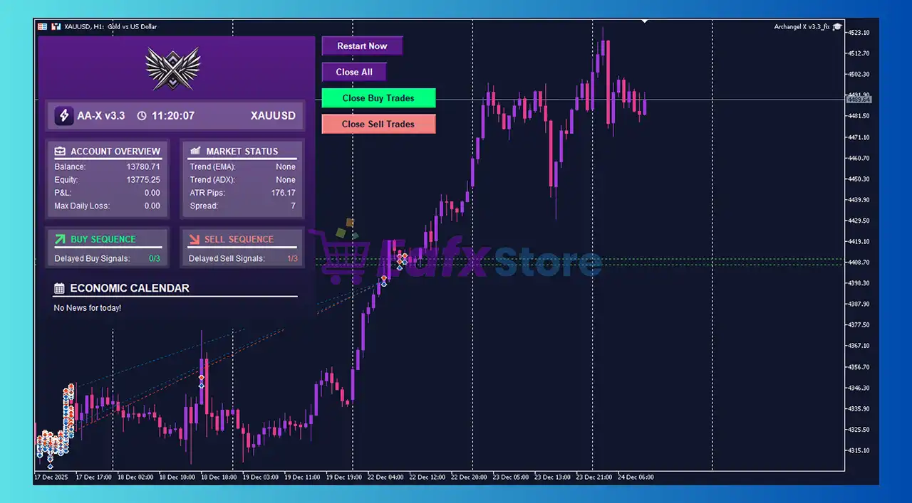 The EA includes Advanced News Protection features. This system is designed to pause trading activities around significant economic announcements to prevent unnecessary exposure to "price spikes" or slippage. By filtering out high-impact events, the EA prioritizes account safety over high-risk gambling.