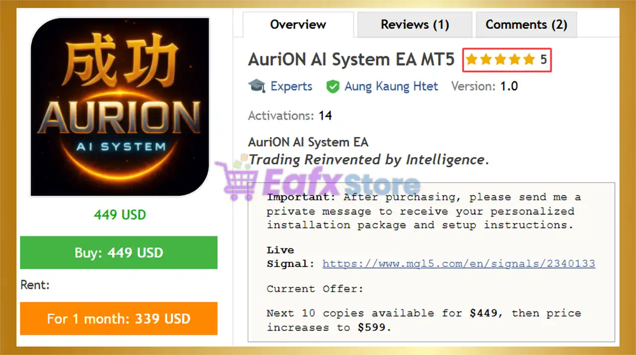 AuriON AI System EA MT5 (Latest version) – GroupBuy