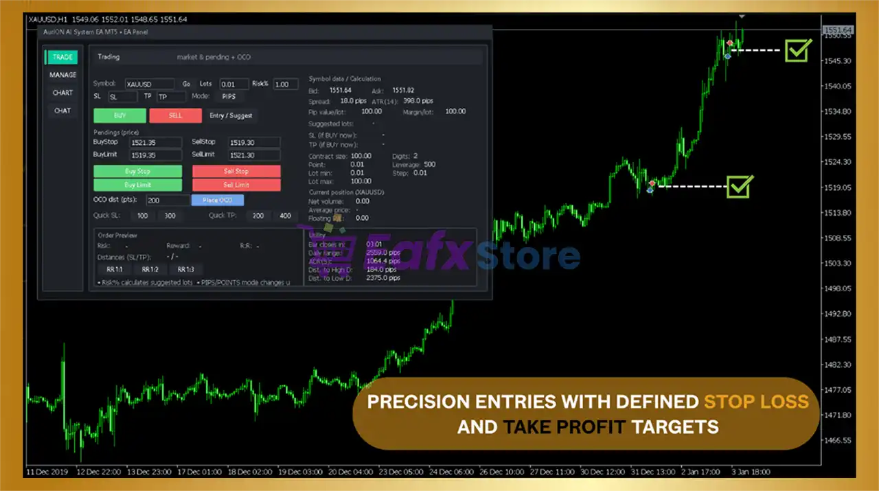 AuriON AI System EA is a cognitive trading system that integrates machine learning, deep neural cognition, and GPT-based intelligence. It operates as an autonomous AI trading agent that analyzes market conditions, makes contextual decisions, and executes trades independently in real time—especially optimized for Gold (XAUUSD) on the H1 timeframe.
