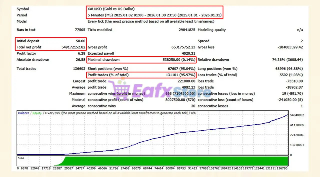 The Aurum Sn Core EAbacktest trading results achieved impressive profit performance for 13 consecutive months on the XAUUSD (Gold) pair. The advisor showed the ability to maintain safe stars on the 5-minute chart.