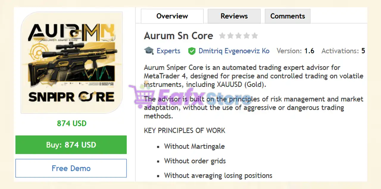 This product is compiled by Dmitriq Evgenoeviz Ko. This author has more than +5 years of experience working on MQL5 with many famous products such as Aurum Sn Core MT4, Solar Metal MT4, Genesis VIP MT4, Voyageur EA MT4, Golden Shower MT4, Golden Dome MT4 and other advisors. Among them, Aurum Sn Core EA is his best performing product.