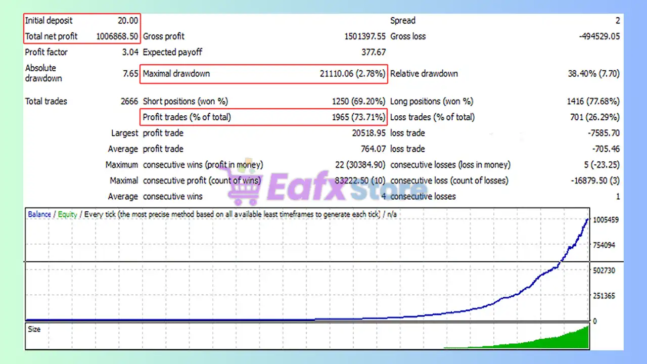 The EA applies a Predetermined, Rule-Based Execution strategy with Dynamic Risk Management. It analyzes large sets of data and makes trading decisions based on predefined parameters — ensuring objectivity, efficiency, and consistency without emotional interference.