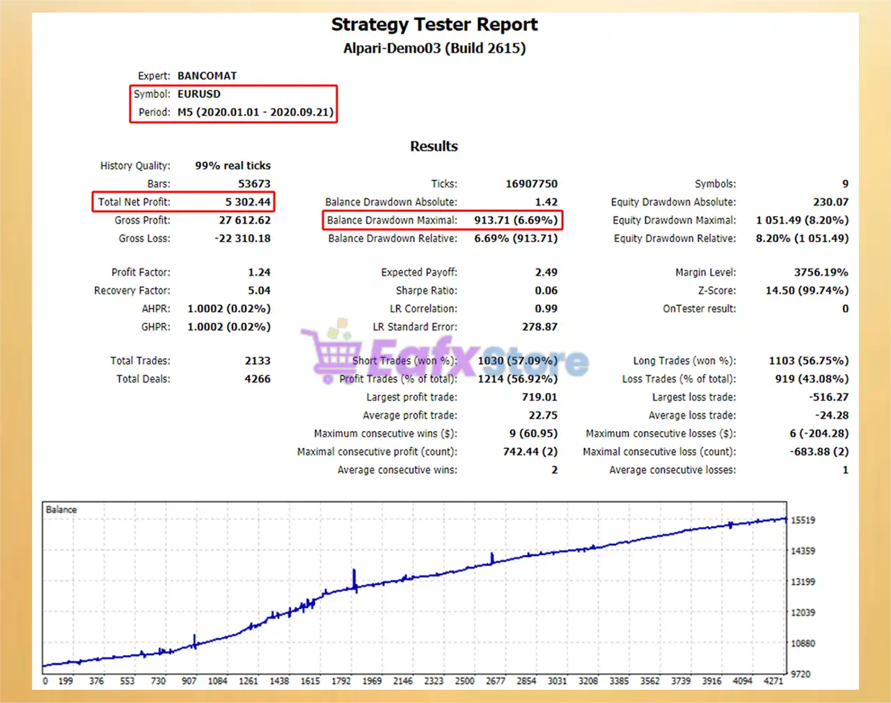 🔶 The Bancomat EA backtest trading results achieved impressive profit performance for 9 months on the EURUSD pair.
