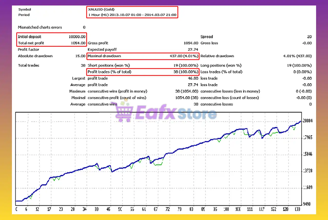 🔶 The BreakOutGold EA backtest trading results achieved impressive profit performance for 5 months on the XAUUSD (Gold) pair.