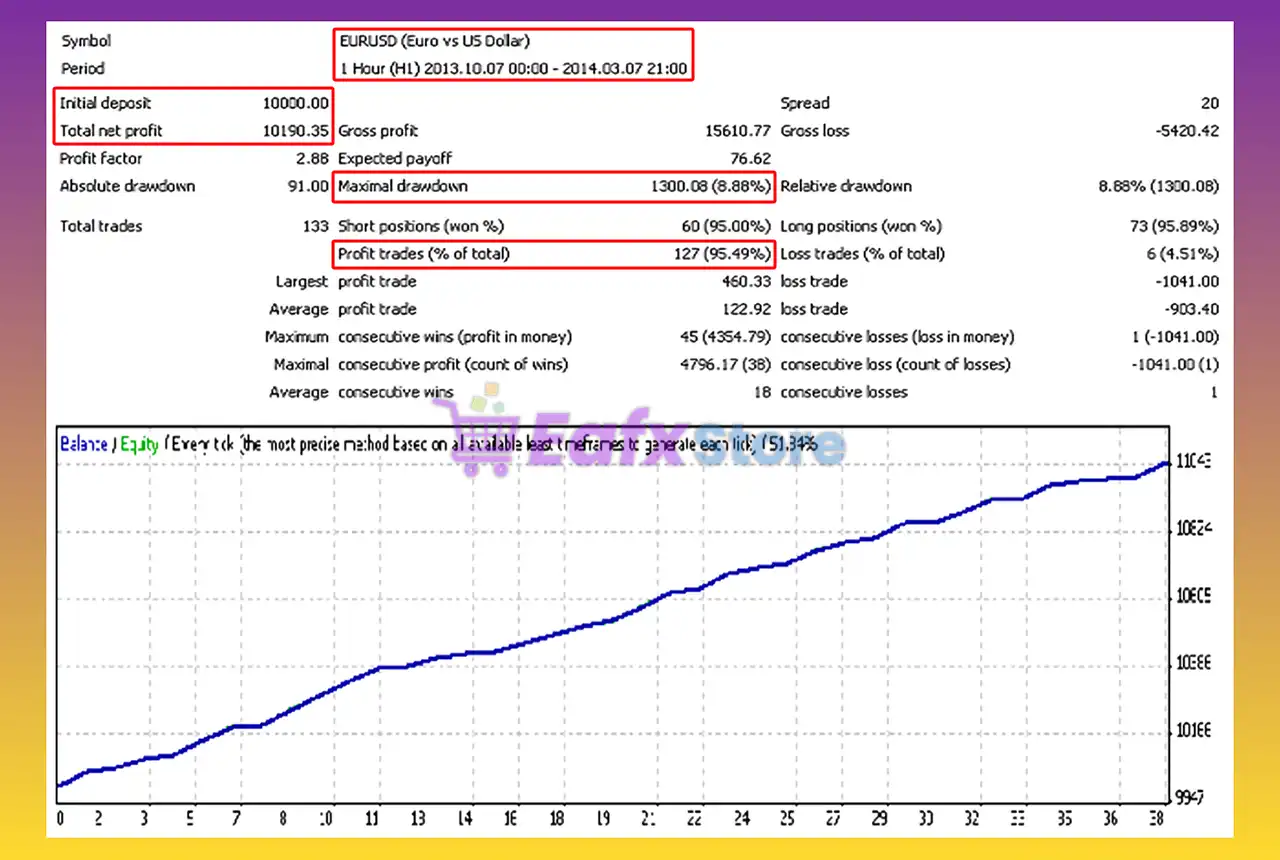 🔶 The BreakOutGold EA backtest trading results achieved impressive profit performance for 5 months on the EURUSD pair.