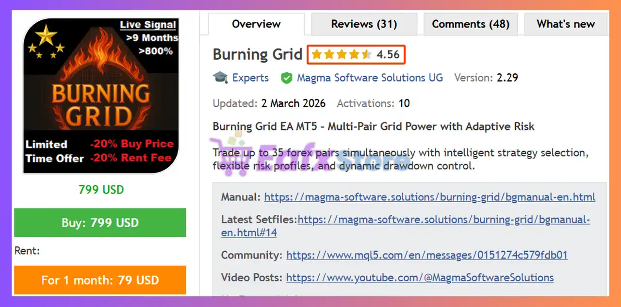 In short, Burning Grid EA stands out as a top-tier automated trading solution for traders seeking precision, scalability, and performance across 35+ forex pairs. With its cutting-edge multi-currency grid engine, dynamic drawdown control, and adaptive strategy logic, this EA is purpose-built to accommodate traders of all levels—whether you’re growing a small retail account or aiming to pass strict prop firm challenges like FTMO or MyForexFunds.