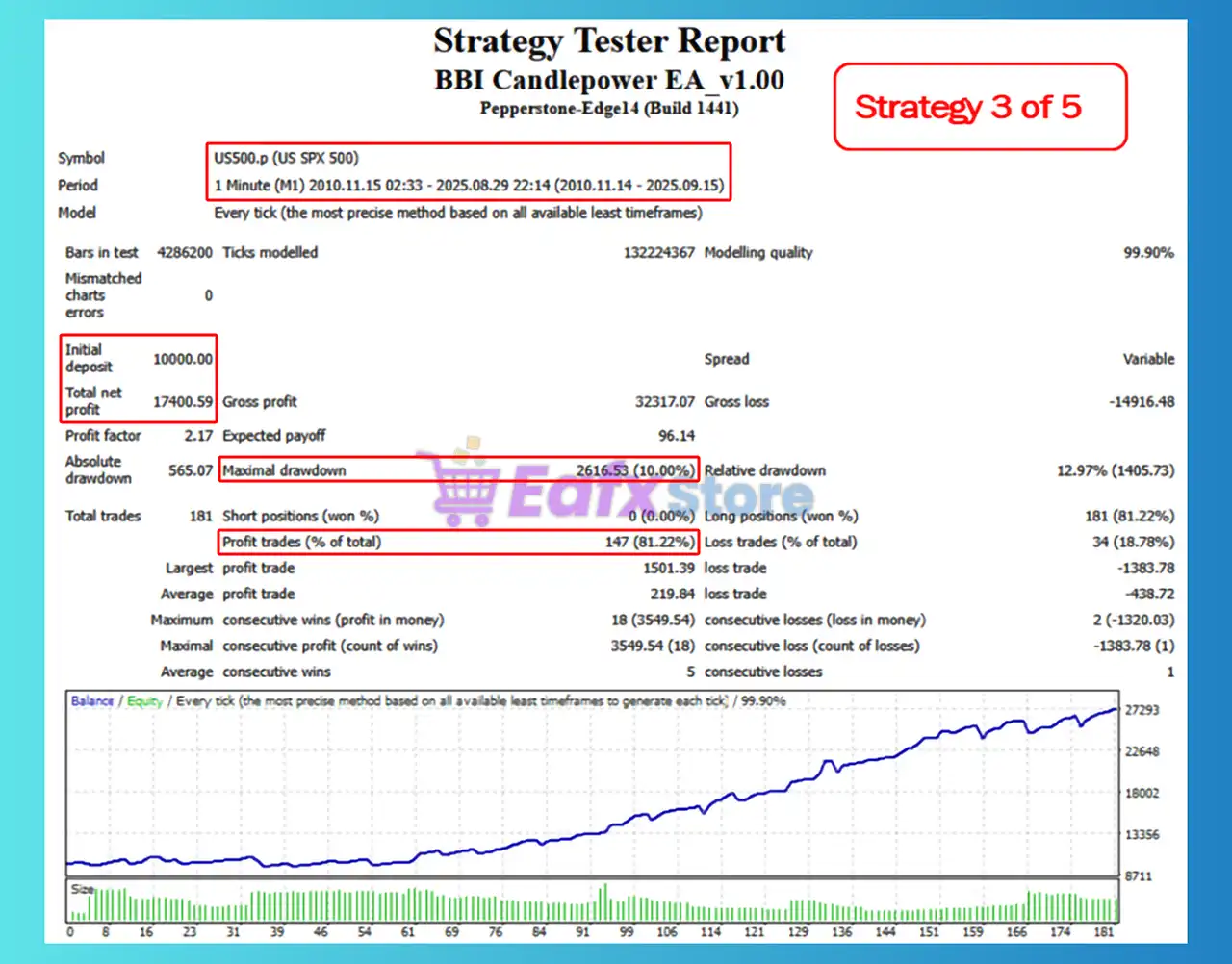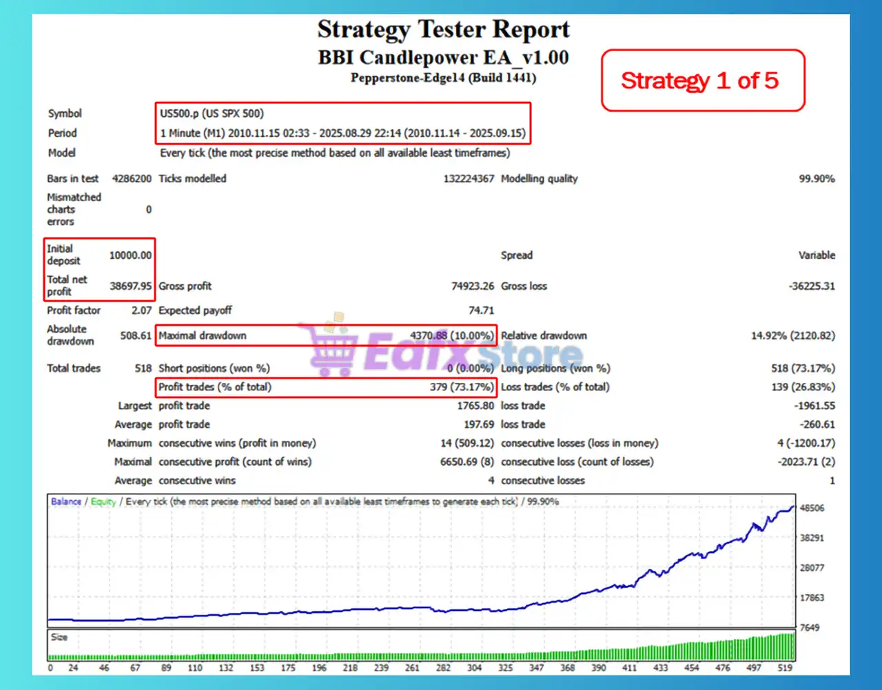In short, Candle Power EA stands out as a powerful S&P 500 trading EA for MT4, leveraging volatility spikes and market overextensions through a structured multi-strategy engine. With comprehensive SL, TP, and dynamic exit frameworks, it prioritizes capital protection and adaptability. This portfolio-based approach ensures smoother equity performance across changing market cycles.