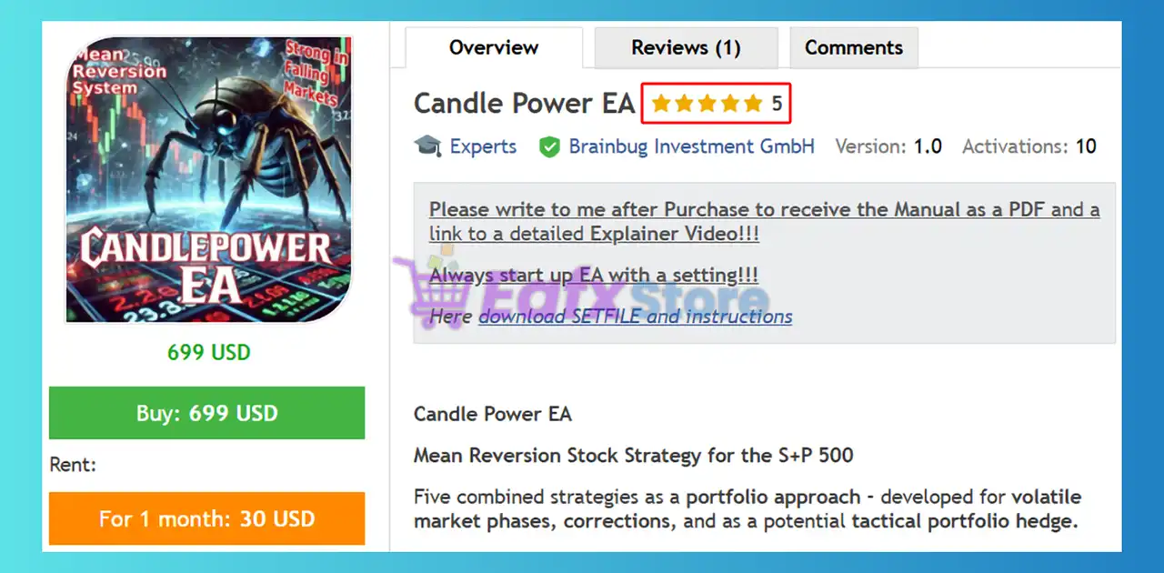 Candle Power EA is optimized for S&P 500 and can also run on VIX, Gold, and Oil.