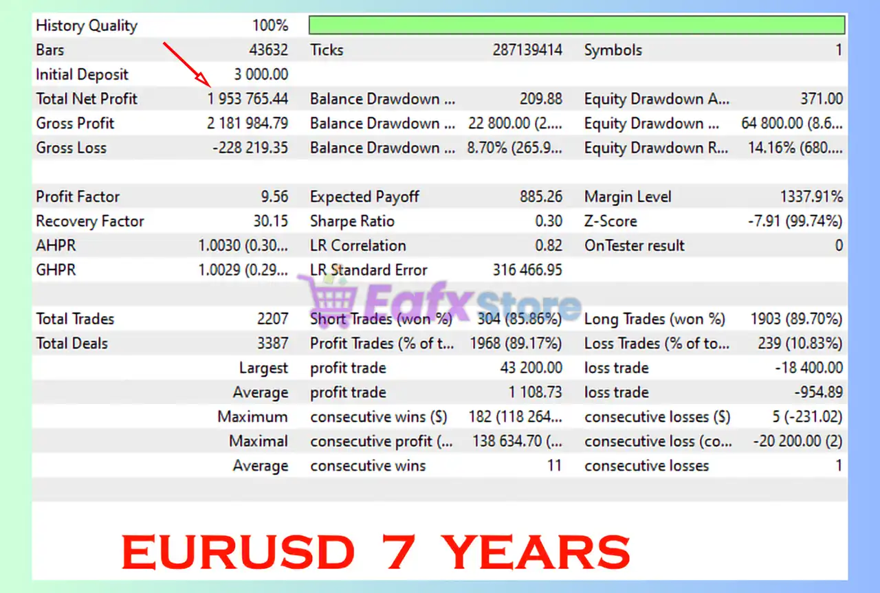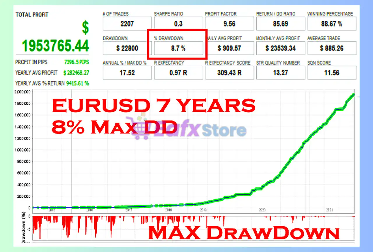 🔶 The Divo EA backtest trading results achieved impressive profit performance for 7 years on the EURUSD pair.