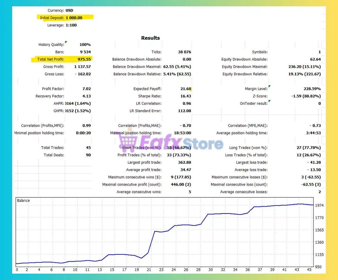 In short, The Dow Jones Rocket EA MT5 is the perfect solution for traders seeking stability while conquering the challenges of Prop Firms in 2026. With its highly accurate momentum-capturing algorithm on US30 and Gold, this robot has demonstrated impressive performance with a 73% win rate and a drawdown of only 5.4%. Its tightly integrated risk management system protects your account from unexpected fluctuations during the US trading session.