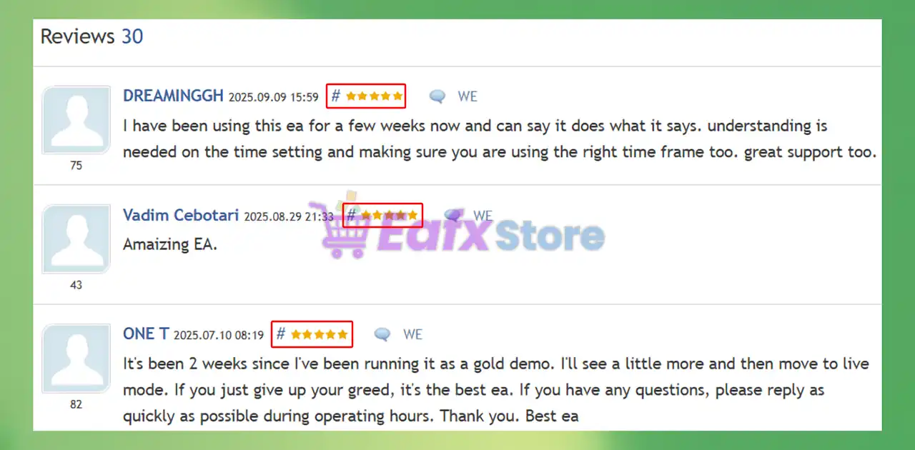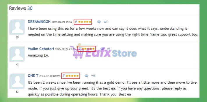 DS Gold Robot MT5 delivers outstanding trading performance, particularly when optimized for the XAUUSD currency pair, showcasing its potential to generate consistent profits. Highly rated and trusted by the MQL5 community, this expert advisor combines advanced strategies with reliable results, making it a top choice for traders seeking efficiency and profitability in the forex market. Here are 5 star user reviews: