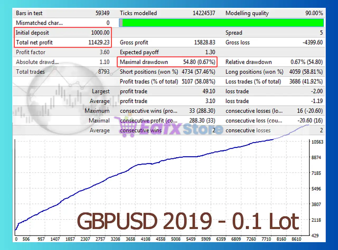 ✅ GBPUSD: $1,000 → $11,429 profit, 58.08% win rate, 0.67% max drawdown.