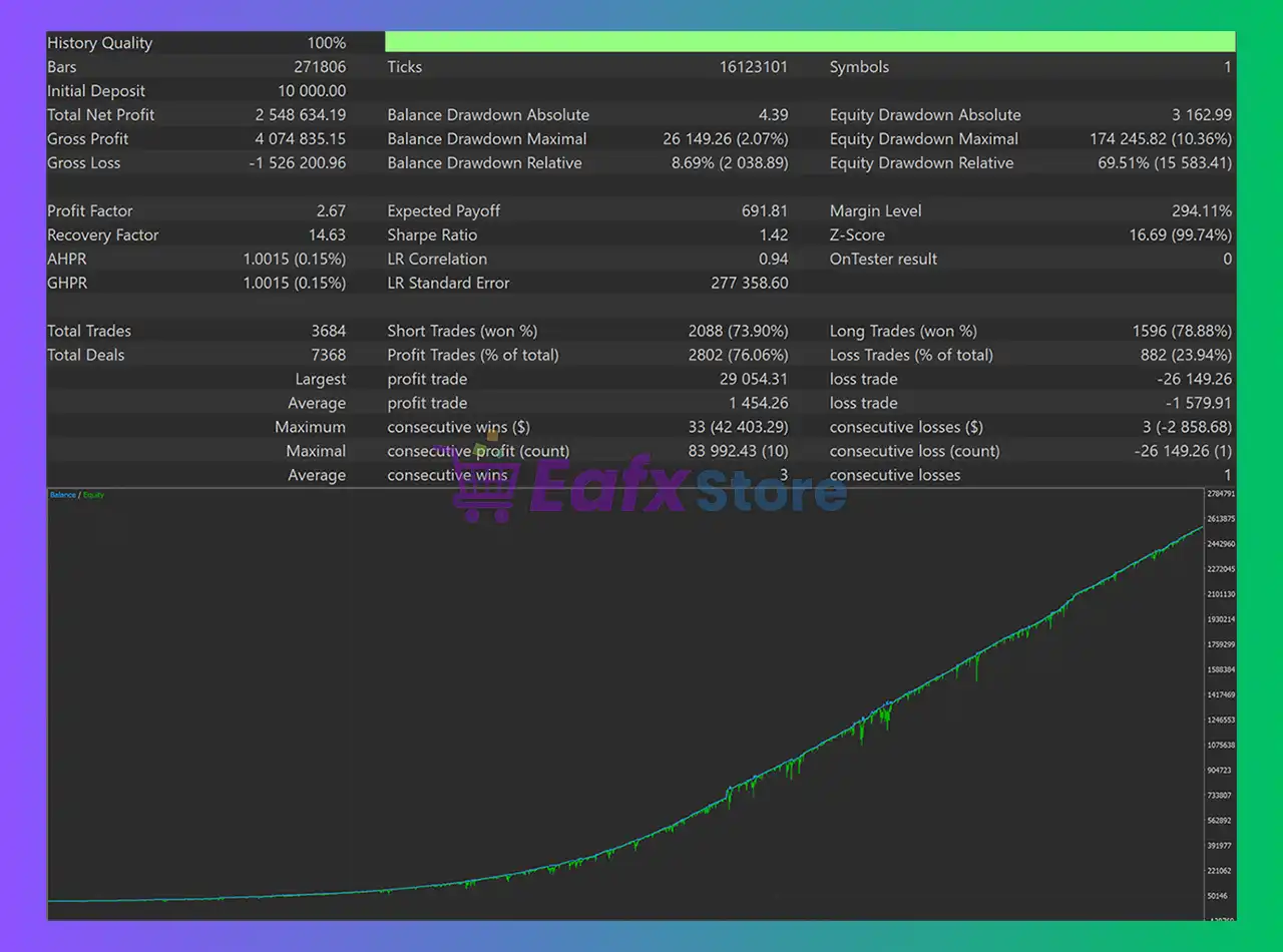 Enza EA uses a fixed Stop Loss, combined with intelligent placement of up to 6 additional recovery entries. This structure strengthens profitability while keeping exposure controlled. Its built-in volatility and news filters also help avoid high-risk conditions that typically cause large drawdowns.