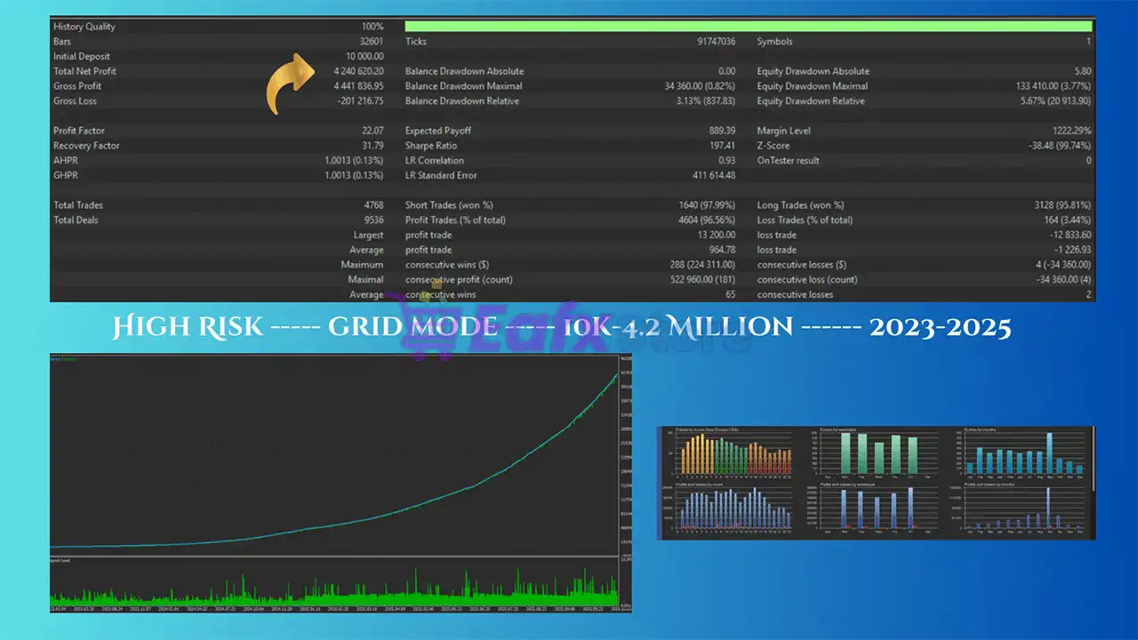 While optimized for XAUUSD (Gold), the EA is an "AllPair Engine." It performs exceptionally well on US100 (Nasdaq), US30 (Dow Jones), BTCUSD, and all major Forex pairs like EURUSD and GBPUSD.