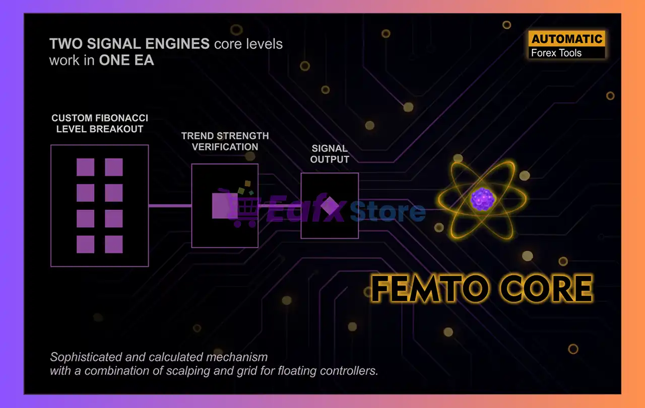 Femto Core EA is a professional gold trading robot for XAUUSD that combines dual breakout engines with custom Fibonacci logic and a proprietary Bull Bear Power filter to identify high-probability entries under controlled risk conditions.