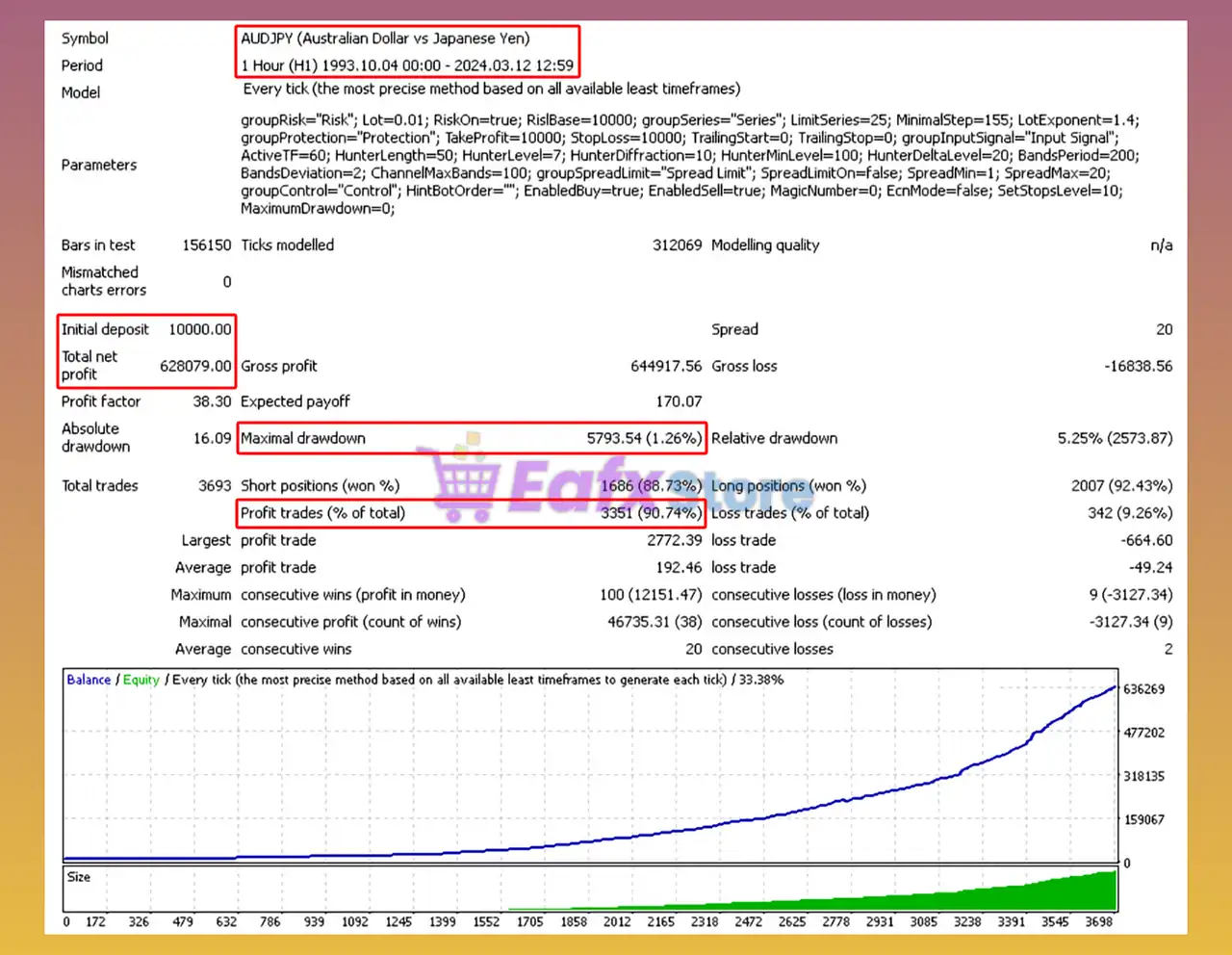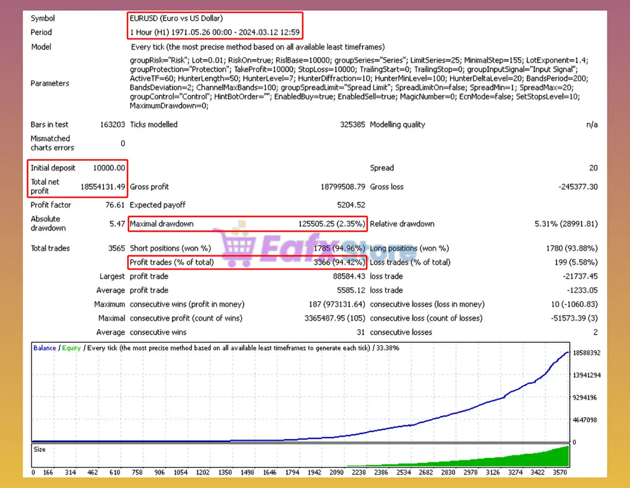 🔶 The Forex FalconF4 backtest trading results achieved impressive profit performance for 53 years on the EURUSD pair.