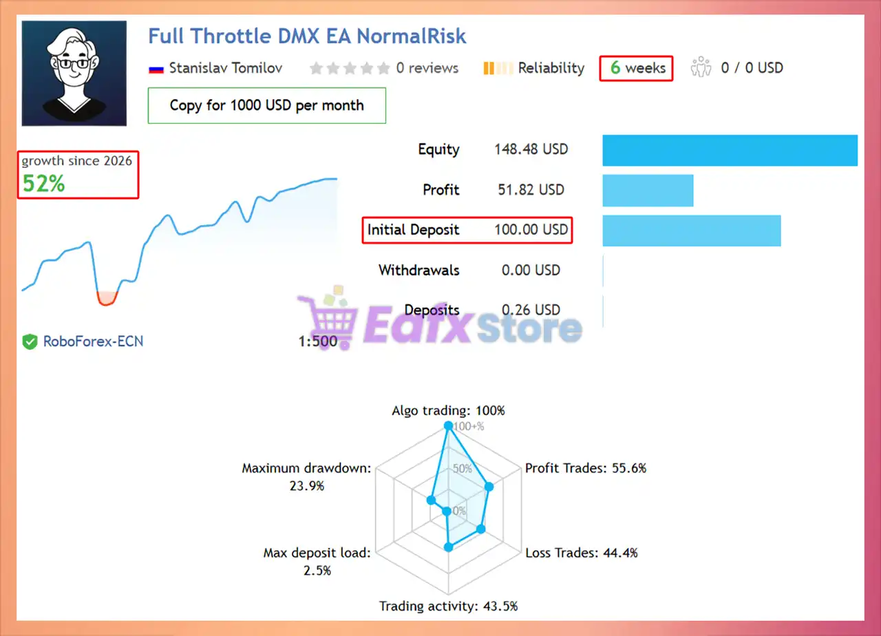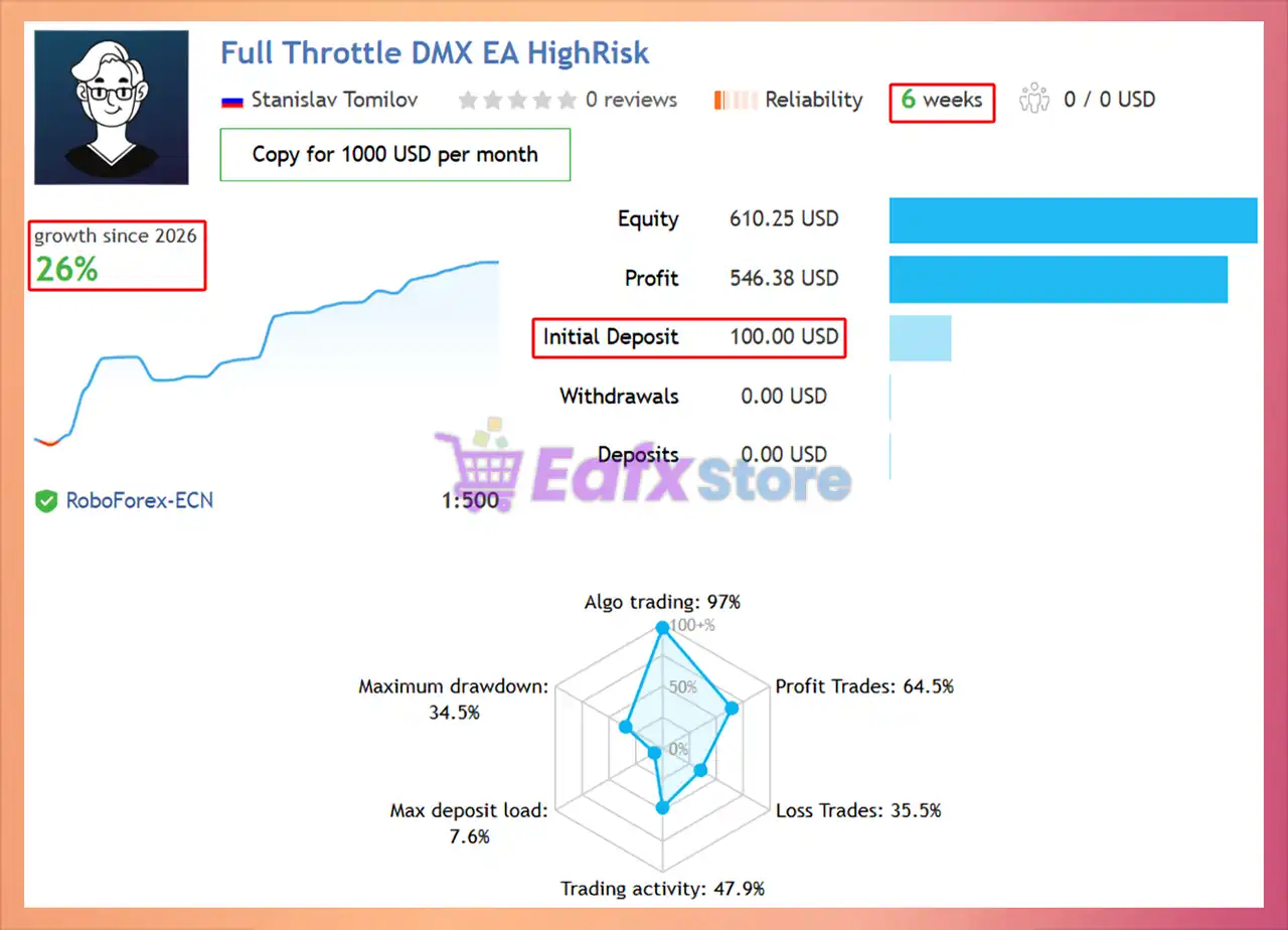 Full Throttle DMX EA shows significant potential in providing stable and reliable profits, becoming a reliable tool in the forex market. This advisor is highly appreciated by the community in many aspects and has won the trust of users.