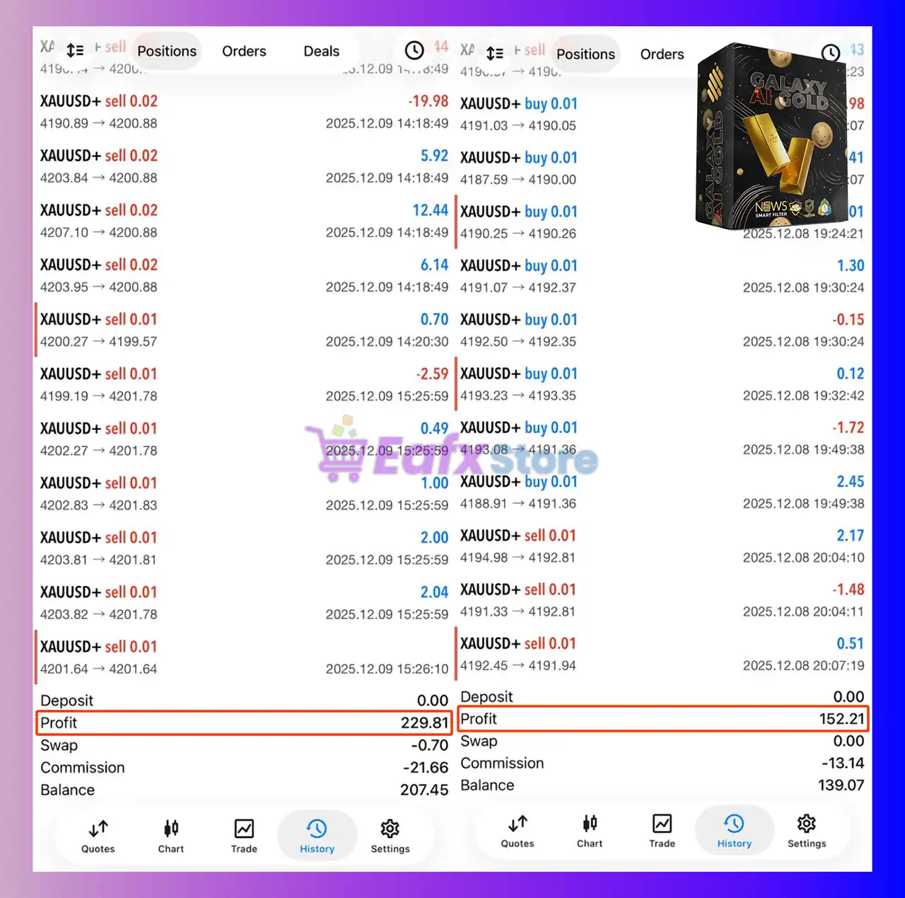 Galaxy AI Gold stands out for its reduced martingale risk, gold-specific optimization, transparent lot structure, advanced loss management, and proven long-term Myfxbook performance, making it ideal for traders seeking stable XAUUSD automation.
