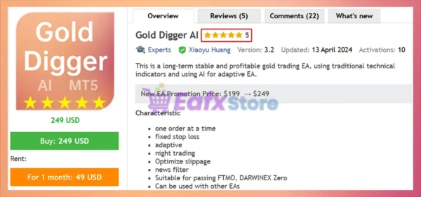 Gold Digger AI EA shows significant potential in providing stable and reliable profits, making it a reliable tool in the forex market. The advisor is highly appreciated by the MQL5 community in many aspects and has won the trust of users.