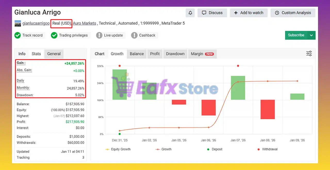 Gold Heist EA can run with a minimum deposit of around $200, making it accessible for small and medium trading accounts.