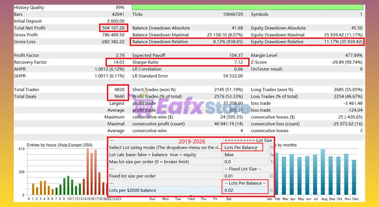 🔶 The Gold House EA backtest trading results achieved impressive profit performance for 6 years on the XAUUSD pair. Profitability performance when using the Lots Per Balance strategy: