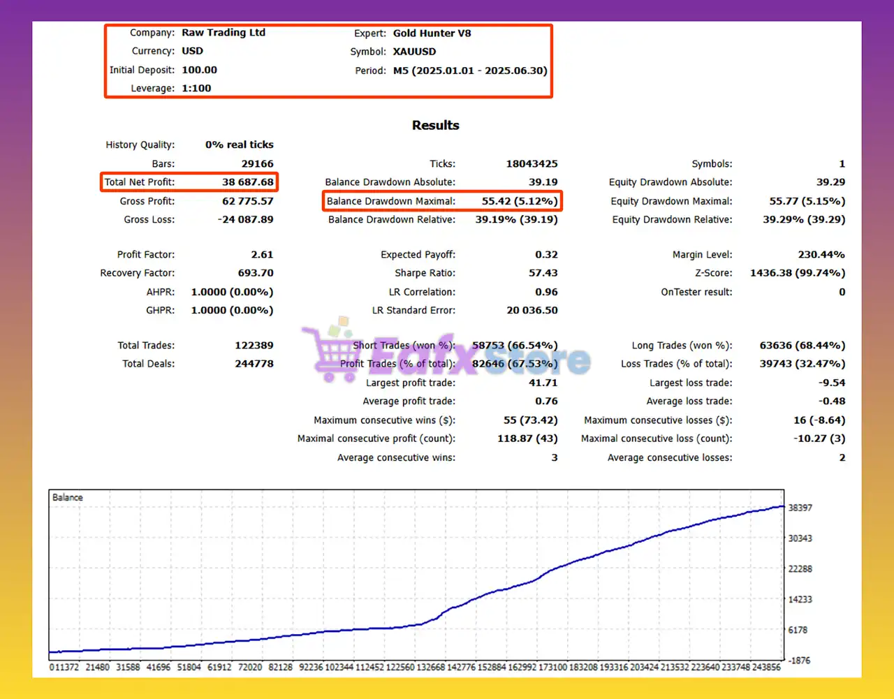While it is versatile, Gold Hunter V8 is most effective on the M5 or M15 timeframes, where it can capture intraday gold trends with high precision.