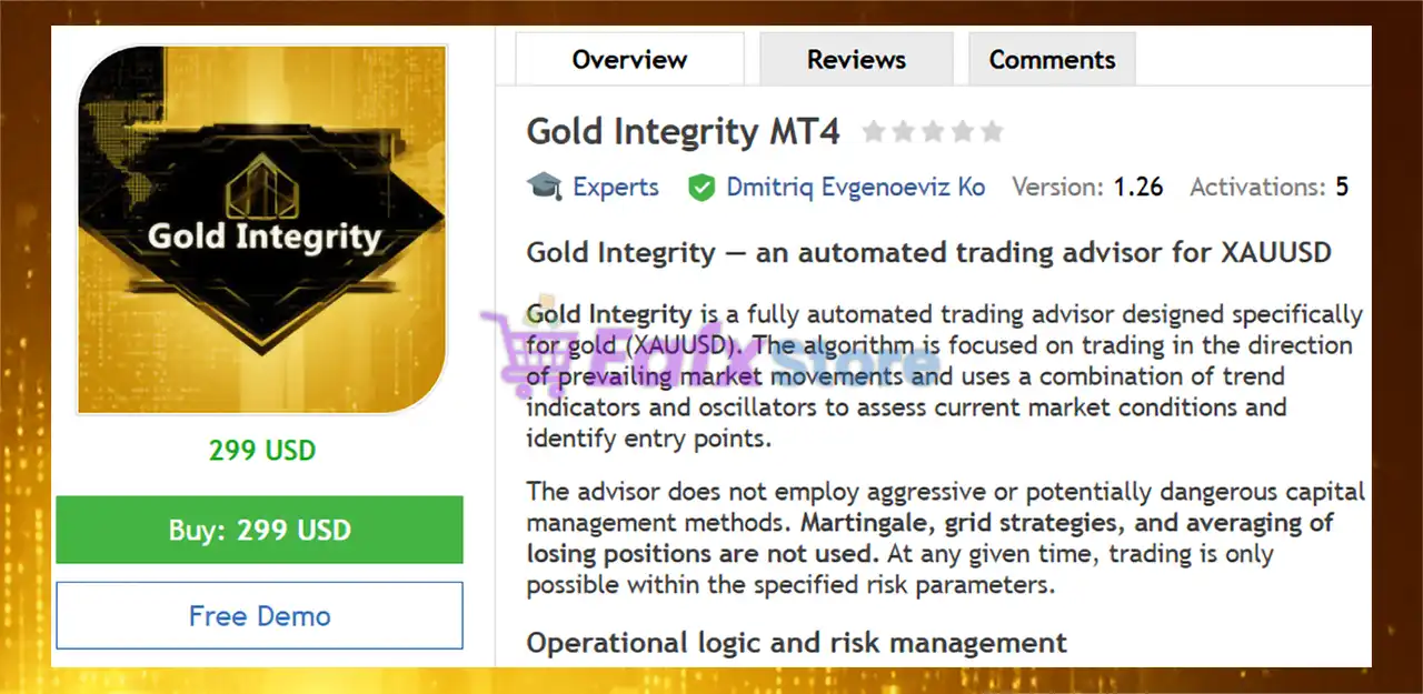 This product is compiled by Dmitriq Evgenoeviz Ko. This author has more than +5 years of experience working on MQL5 with many famous products such as Gold Integrity MT4, Golden Snow MT4, Trinity Gold EA MT4, Midas AI MT4, Gold Fish Scalp MT4, Gold x25 MT4 and other advisors. Among them, Gold Integrity MT4 is his best performing product.