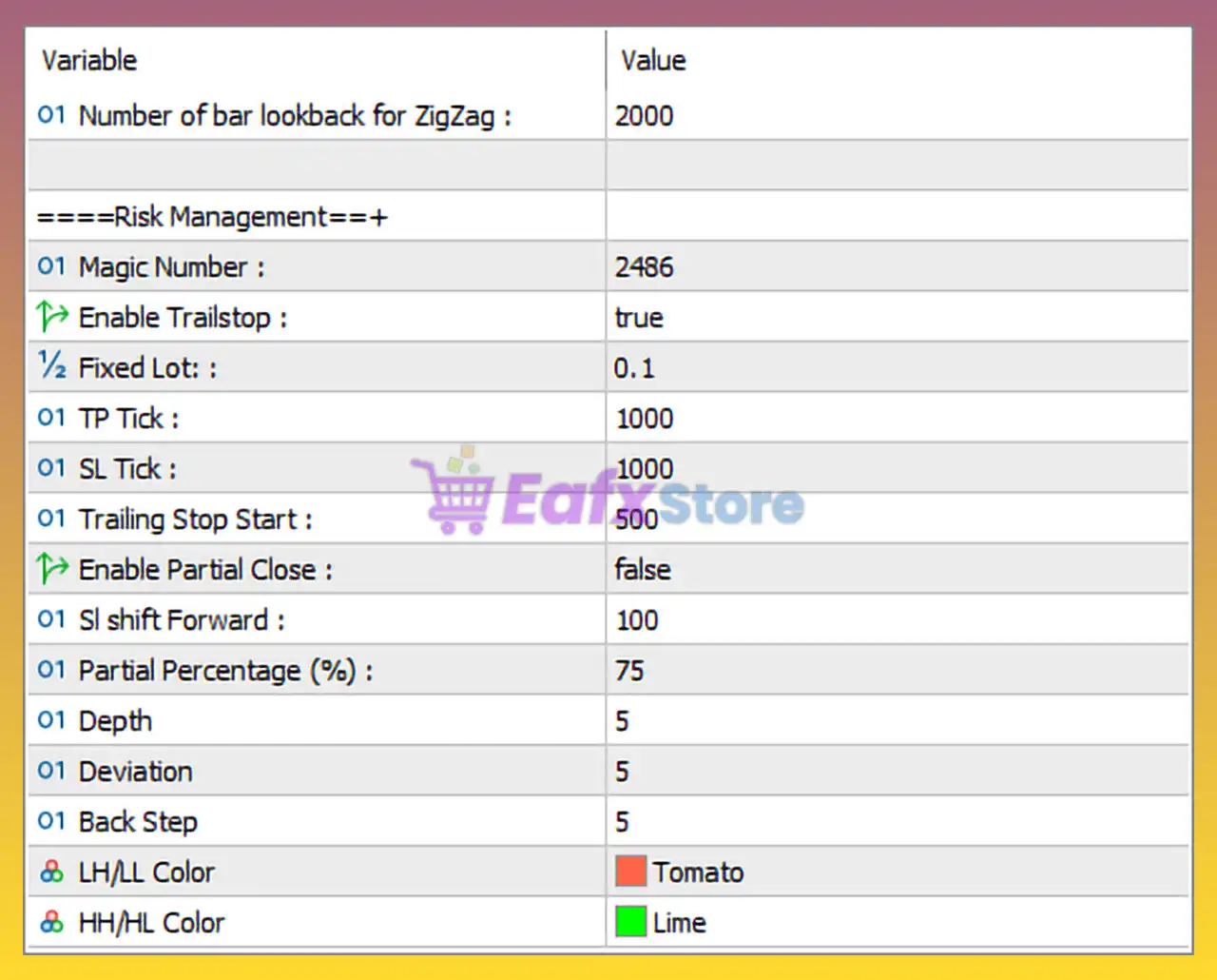 Gold Smiley Master MT5 uses predefined Stop Loss, Take Profit and trailing stop mechanisms to maintain disciplined risk management.