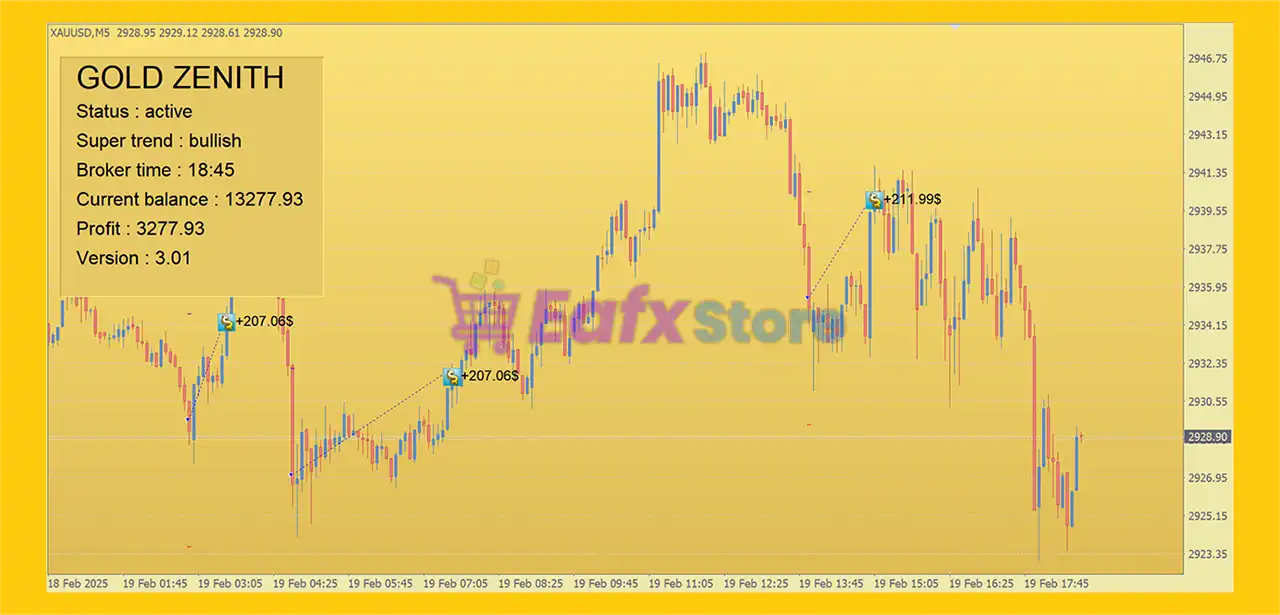 Gold Zenith MT5 is a premium Expert Advisor (EA) for XAUUSD (Gold), distinguished by its disciplined and safe structure that completely avoids high-risk methods like grids or Martingale. It focuses on trading pullbacks within a trend move, ensuring every trade is protected by a Stop Loss for controlled, reliable automation.