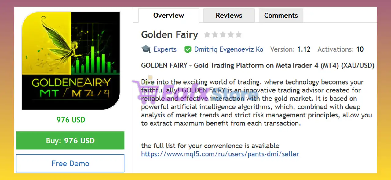 This product is compiled by Dmitriq Evgenoeviz Ko. This author has more than +5 years of experience working on MQL5 with many famous products such as Golden Fairy MT4, Golden Harmony MT4, Infinity Gold Impulse MT4, Pharaoh Gold MT4, Apex Gold MT4 and other advisors. Among them, Golden Fairy EA is his best performing product.